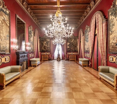 Stile e Struttura: Caratterizzato da uno sfarzoso stile classico-barocco, l'edificio presenta un imponente bugnato, colonne doriche, arazzi, dipinti e specchi. Il giardino, ricco di fontane, ospita il ninfeo e la "Casina di Caccia" progettati dall'architetto Francesco Gai.