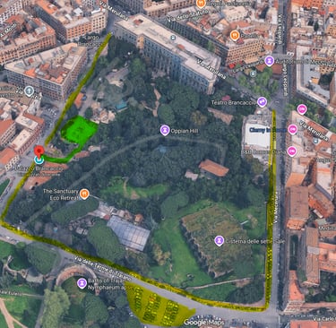 La fatica della salita sarà comunque ben ripagata dallo scenario del parco di Colle Oppio.