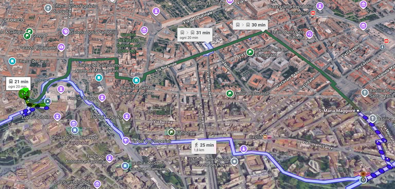 Da lì, proseguire a piedi lungo il percorso verde, su Via Monte Tarpeo, fino a Piazza del Campidoglio e poi all'ingresso laterale della Basilica